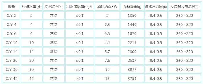待處理的水由除氧泵輸送至引射器,水以一定流速通過引射器時,形成一定的負(fù)壓,將無氧氣體吸入。水與無氧氣體在混合管中充分混合,然后進(jìn)入解析器,水中溶解的氧在解析系統(tǒng)中擴(kuò)散到無氧氣體中。帶氧氣體自解析器頂部進(jìn)入氣水分離器,經(jīng)氣水分離器脫水后進(jìn)入換熱器升溫至60~80℃左右,進(jìn)入加熱器,然后進(jìn)入反應(yīng)器,與反應(yīng)器中的還原劑反應(yīng)后重新成為無氧氣體,再進(jìn)入下一個循環(huán),從而達(dá)到連續(xù)工作的除氧目的。